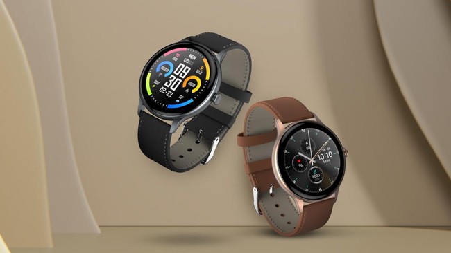 Olike Zeth W1 punya diameter 41 mm dengan material kaca 3D. Hadir dengan dua pilihan warna, yaitu gold dengan leather strap berwarna coklat, serta gray dengan leather strap berwarna hitam.