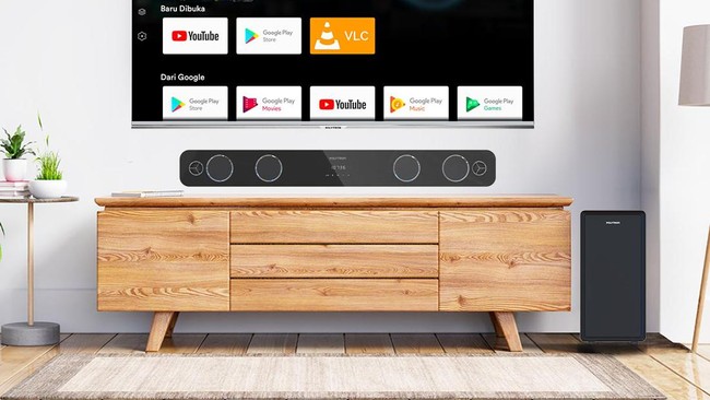Polytron meluncurkan Smart Soundbar PHT 250/SB dengan Spatial Audio. Fitur audio terbaru ini memiliki efek suara seperti tiga dimensi, yaitu efek suara yang mengelilingi, seolah-olah sedang berada di dalam suatu adegan, dan efek suara yang keluar dari berbagai arah berkesan mengelilingi 360 derajat membuat film dan suara terderngar lebih realistis.