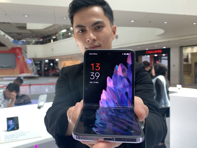 "OPPO Find N2 Flip satu-satunya yang engselnya itu generasi terbaru. Ini HP yang engselnya tersertifikasi secara global, dia mampu melalui siklus buka-tutup sebanyak 400 ribu kali atau setara dengan 10 tahun apabila dalam satu hari ada 100 kali buka tutup untuk daya tahannya," ujarnya.