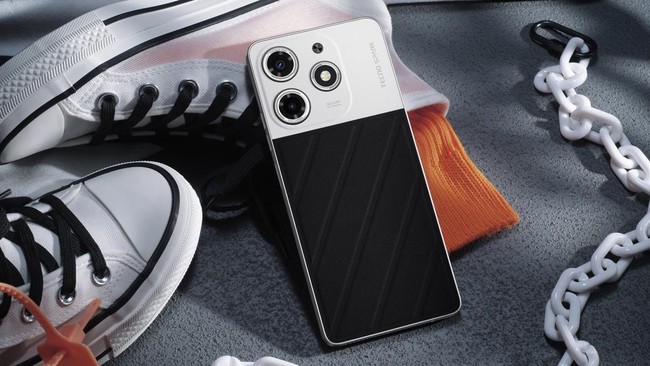 Selain RAM yang diperbesar, Tecno Spark 10 NFC pun dipoles tampilannya pakai Magic Skin Edition. Memadukan dua warna putih dan hitam di bagian belakang bikin penampilannya stylish.