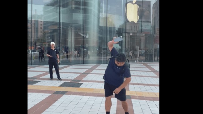 Tak terima akan hasil tersebut, Lei Jin akhirnya memilih banting HP miliknya itu di depan Apple Store.