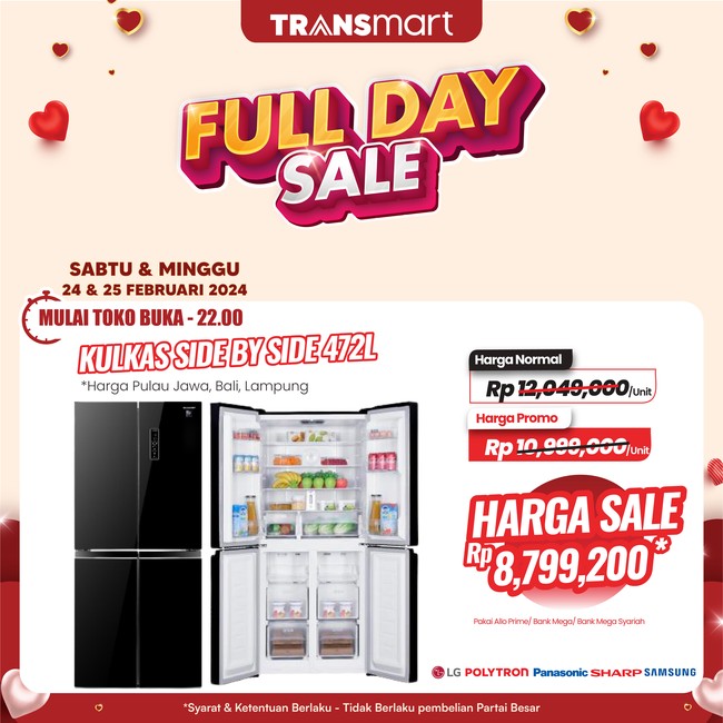 Jadi tunggu apa lagi? Ayo merapat ke Transmart terdekat, lalu nikmati diskon melimpah khusus di Transmart Full Day Sale.