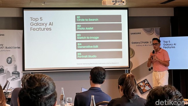 Menurutnya, khusus untuk Galaxy Z Flip 6 selama 26 hari sejak dirilis, fitur-fitur yang paling banyak dipakai itu adalah Circle to Search, Photo Assist, Sketch to Image, generative Edit, dan Portrait Studio.
