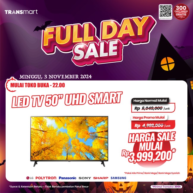 Transmart Full Day Sale kembali hadir Minggu, 3 November 2024. Berbagai promosi menarik hadir untuk memenuhi kebutuhan para pelanggan setia Transmart seperti barang elektronik.