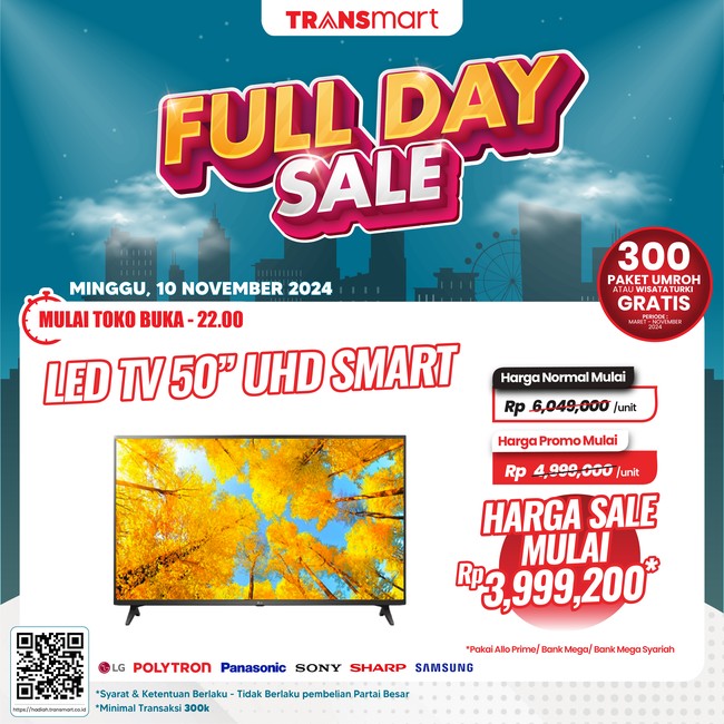 Transmart Full Day Sale kembali hadir Minggu 10 November 2024. Berbagai promosi menarik hadir untuk memenuhi kebutuhan para pelanggan setia Transmart seperti barang elektronik.