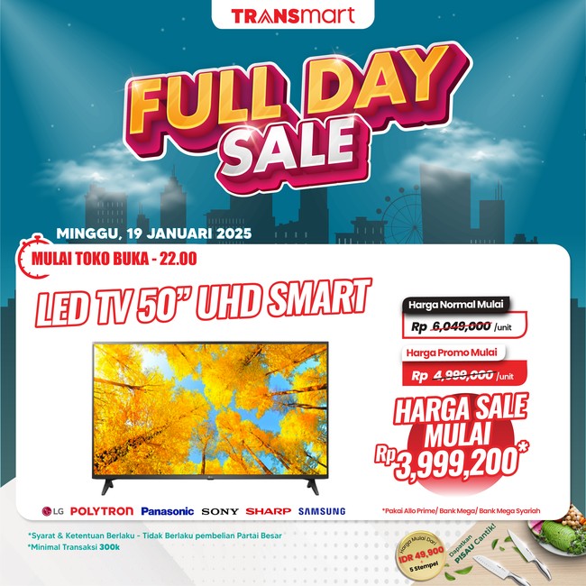 Salah satunya adalah TV LED 50" UHD Smart. Harga normal TV tersebut mulai dari Rp 6.049.000. Namun harga promonya mulai Rp 4.999.000.