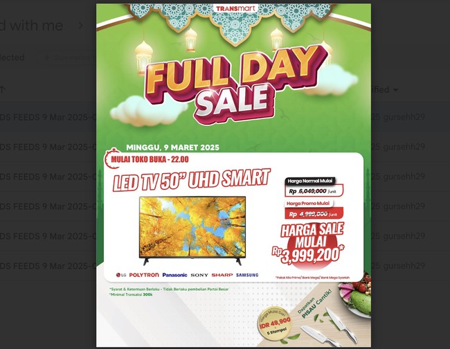 Salah satunya adalah TV LED 50" UHD Smart. Harga normal TV tersebut mulai dari Rp 6.049.000. Namun harga promonya mulai Rp 4.999.000.