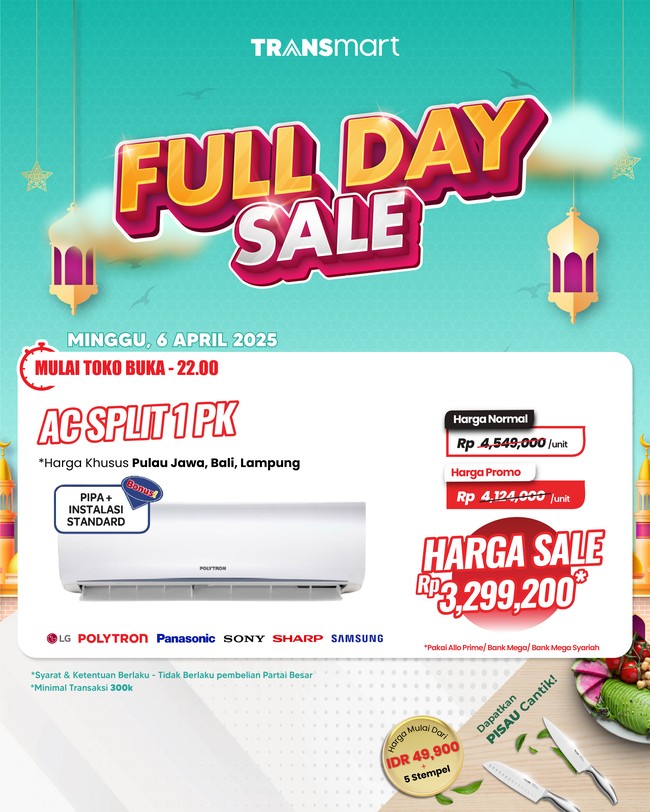 Transmart Full Day Sale kembali hadir Minggu, 6 April 2024. Berbagai promosi menarik hadir untuk memenuhi kebutuhan para pelanggan setia Transmart seperti barang elektronik.