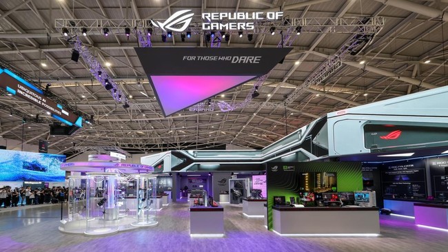 Asus punya booth yang unik di Computex 2025, yaitu tematik The ROG Lab yang terlihat futuristis.