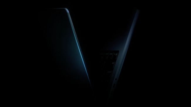 Unggahan tersebut menampilkan siluet MacBook Pro yang terlipat membentuk huruf "V", lengkap dengan tulisan "coming soon."
