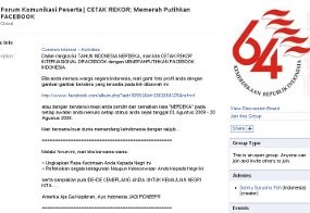 'Merah Putih' Ingin Cetak Rekor di Facebook - detikInet Senin, 03 Agu 2009 12:45 WIB Tautan telah disalin Jakarta - (ash/faw) Tautan telah disalin