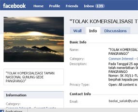 Tolak Komersialisasi Gede Pangrango Pecinta Alam 'Turun Gunung' ke Facebook - detikInet Sabtu, 14 Nov 2009 10:26 WIB Tautan telah disalin Jakarta - (ash/ash) Tautan telah disalin