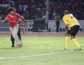 Hendri, pemuda berusia 20 tahunan yang mengenakan kostum timnas Indonesia, menggiring bola ke gawang Oman dan berusaha mencetak gol--meski gagal. Hendri mengaku melakukan itu karena gemas dengan permainan buruk Bambang Pamungkas dkk.