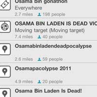 Saat ditelusuri detikINET pada kolom quick search, Senin (2/5/2011), dengan nama venue 'Osama' muncul beberapa lokasi baru seperti: Osama bin Laden is Dead Victory Party, Osama's Death Celebration, Osama's Funeral, Time Square Osama B Dead Party, dan sebagainya.