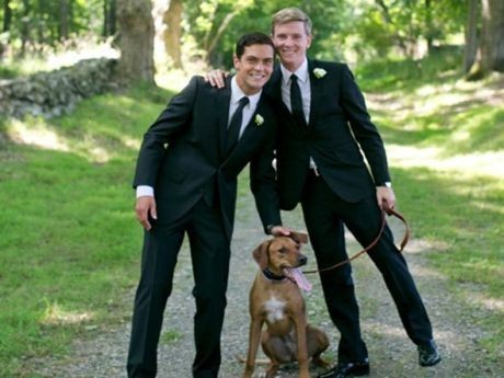 Pernikahan tidak biasa ini benar-benar sangat sederhana. Karena hanya disaksikan sebanyak 75 tamu, dengan anjing kesayangan mereka sebagai pengiring pengantin.