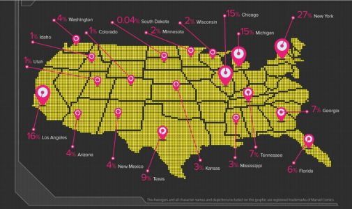 Sementara ini daftar penyebaran fans Marvel Comics di Seluruh negari Paman Sam yang diangkat dari data real time yang disusun Network Insight.