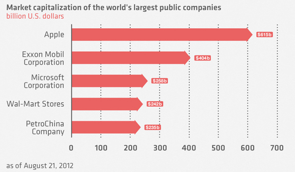 Hal itu diketahui dalam infografik yang dilansir Statista. Minggu kemarin, Apple menorehkan sejarah dengan jadi perusahaan paling berharga di dunia. Harga yang diukir menembus angka USD 621,51 miliar atau setara dengan Rp 5.067 triliun!