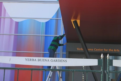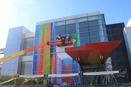 Gedung Yerba Buena pun sudah bersolek. Berbagai dekorasi bertema Apple sudah tampak di sana. Mau tahu seperti apa suasananya? Berikut jepretan foto-fotonya yang direkam Business Insider.