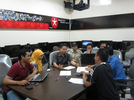 Begini rupanya pemandangan sehari-hari di salah satu ruangan di BlackBerry Innovation Center (BBIC). Ya, masih ingat? Maret silam, pembesut BlackBerry Research In Motion (RIM) menggandeng Institut Teknologi Bandung (ITB) membentuk pusat inovasi ini. Penasaran, apa saja yang dikerjakan tim BBIC?