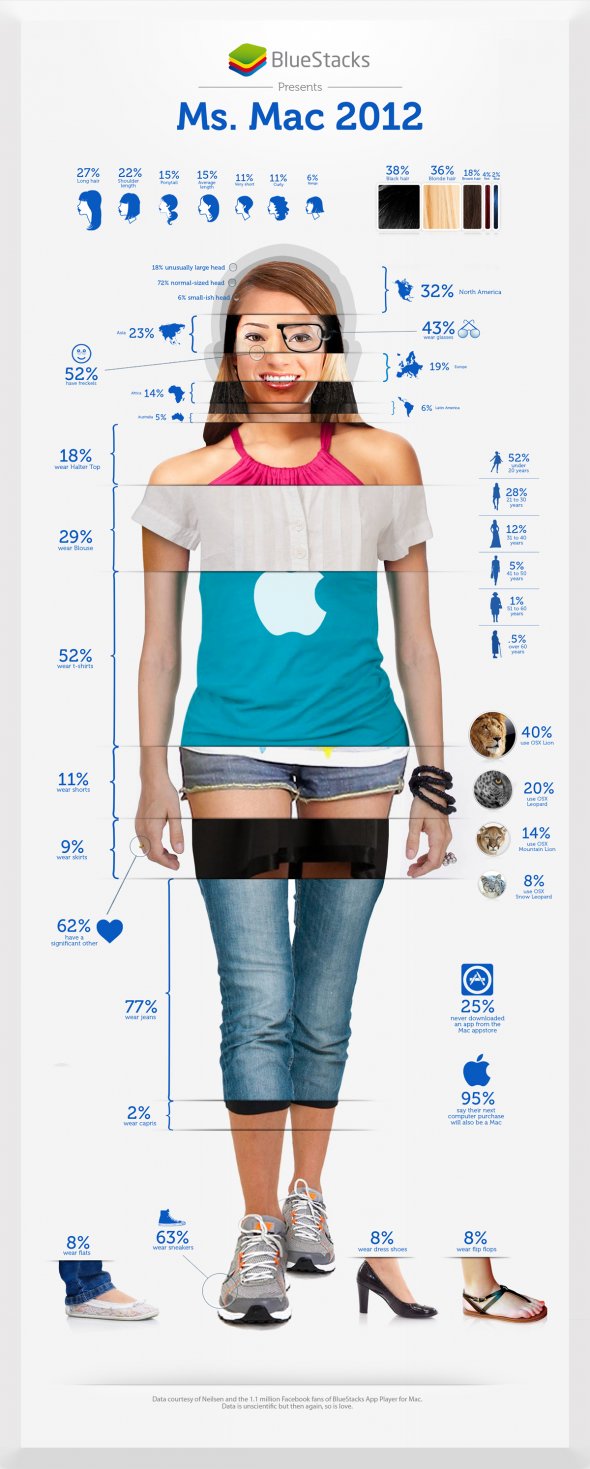 Sebuah perusahaan bernama BlueStacks melakukan sebuah survei di antara wanita pengguna Macbook. Menariknya, riset ini untuk menilik karakter fisik dari pengguna komputer besutan Apple tersebut. Seperti apakah hasilnya?