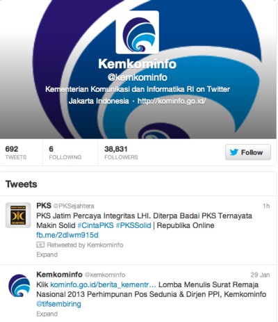 Tak Ingin Berpolemik, Kominfo Tutup Akun Twitter - detikInet Jumat, 01 Feb 2013 16:55 WIB Tautan telah disalin Kicauan Twitter Kemkominfo yang sempat diposting (pembaca detikINET) Jakarta - (tyo/rou) Tautan telah disalin