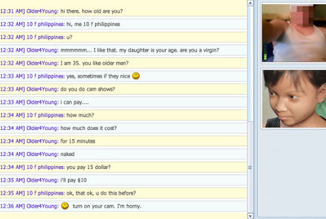 Salah satu bentuk eksploitasi seksual pada anak di Filipina adalah Webcam Child Sex Tourism atau wisata seks anak melalui webcam. Anak-anak miskin dari desa-desa direkrut, atau bahkan dijual oleh keluarganya. Mereka ditampung di sebuah mess atau rumah kontrakan yang dalam bahasa setempat disebut 'Den', lalu disuruh tampil vulgar dan memeragakan aktivitas seksual di depan kamera.