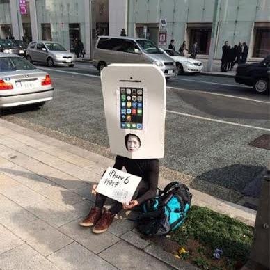 Penggila Apple sekaligus blogger itu bernama Yoppy. Dia sudah mengantre dalam sebuah antrian dekat toko Apple di Jepang. Dia mengantre untuk mendapatkan nomor urut perdana saat membeli iPhone 6 nanti.