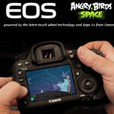 Dalam foto terlihat pengguna sedang memainkan game burung-burung pemarah ini di layar 5D Mark III-nya. Belum pernah terjadi sebelumnya sebuah kamera DSLR dijadikan konsol game.