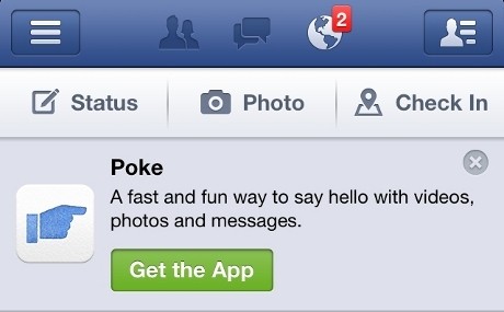 Poke memungkinkan pengguna 'mencolek' teman dengan mengirim sekilas pesan disertai foto atau video. Pesan ini hanya akan tampil 10 detik sebelum akhirnya menghilang sendiri.