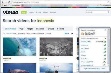 "Punten pak @tifsembiring, kalau rakyat tak boleh akses vimeo, mengapa di wifi kantor kominfo bisa?" tanya @Donnybu kepada @tifsembiring, sembari menyertai screenshot akses Vimeo di WiFi Kominfo.
