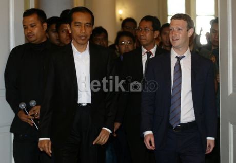 "Baru saja saya dengan Mark Zuckerberg sudah berbicara banyak tentang pengembangan Facebook di Indonesia. Dan tadi kita berbicara memanfaatkan Facebook dalam rangka menggerakkan mengembangkan ekonomi mikro dan kecil," jelas Jokowi usai bertemu Zuck, di Balai Kota DKI, Jl Medan Merdeka Selatan, Jakarta.
