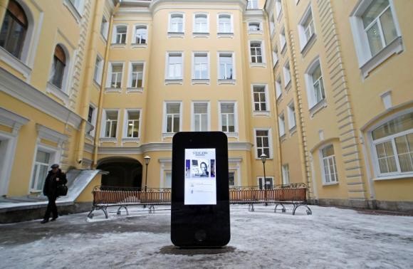 Monumen berbentuk iPhone itu tingginya dua meter dan didirikan dekat sebuah universitas pada Januari 2013, oleh kelompok perusahaan Rusia bernama ZEFS. ZEFS memutuskan membongkarnya karena mereka ingin mematuhi hukum dengan melawan propaganda gay.