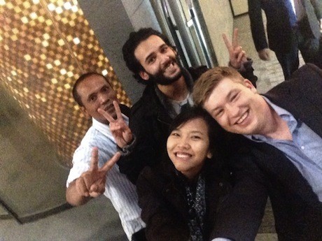 Seketika semua wartawan dari Belgia, Jerman, Spanyol dan Turki langsung nimbrung ikut foto ramai-ramai menggunakan tongsis. Sambil terkekeh-kekeh, mereka tampak kebingungan menggunakan tongsis ini.