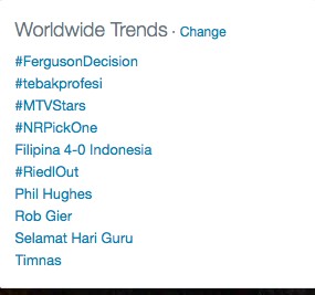 Kekalahan telak Timnas Indonesia atas Filipina di ajang Piala AFF 2014 disuarakan sumbang di ranah Twitter. Sejumlah hashtag negatif pun menemani skor yang berakhir 4-0 untuk kemenangan Filipina.