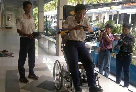 Kedua siswa yang bernama Ahmad Habib dan Prasetyo Langgeng tersebut berhasil menciptakan robot kursi roda yang bisa berjalan secara otomatis yang dikendalikan oleh joy stick.