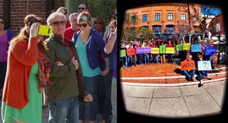 Dalam penglihatannya di cardboard, Maggie melihat beberapa temannya tengah berdiri di sekitar area taman dengan memegang papan nama. Tentu saja, apa yang dilihat oleh Maggie tak lain merupakan foto-foto yang sudah dipersiapkan oleh Mike sebelum melancarkan aksinya.
