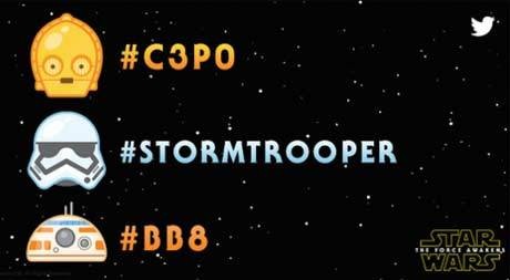 Melalui postingan blog resminya, Twitter ikut bersemangat menyambut perilisan Star Wars: The Force Awakens. Bekerja sama dengan Disney dan Lucasfilm, Twitter memungkinkan para pengguna, khususnya para fans Star Wars memposting tweet tentang segala hal berbau Star Wars dengan menambahkan emoji yang didesain khusus.