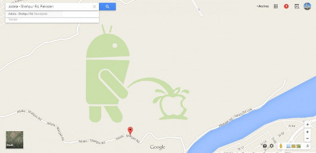 Akhir April 2015 lalu, gambar maskot Android muncul di Google Maps, dan terlihat sedang mengencingi logo Apple. Gambar tersebut muncul di peta negara Pakistan, tepatnya di kota Rawalpindi.