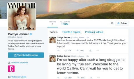 Tak lama setelah tweet tersebut, ribuan follower berbondong-bondong mengunjungi akun Twitter-nya dan memfollow-nya. Followernya terus bertambah, hingga 4 jam kemudian setelah tweet pertamanya, wanita yang sebelumnya bernama Bruce Jenner ini mencapai 1 juta follower.