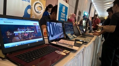 Dalam d'Preneur Spesial Surabaya, startup hasil didikan Start Surabaya diserbu pengunjung sejak pagi dalam acara yang berlangsung di Dyandra Convention Center, Surabaya, Minggu (14/6/2015).