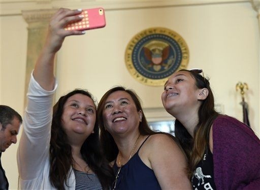 "Jika Anda pernah ikut tur ke Gedung Putih, pasti menemukan tanda ini. Sekarang tidak berlaku lagi," ujarnya sembari merobek tanda 'dilarang mengambil foto dan menggunakan media sosial'.