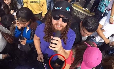 Mino sedang berada kerumunan massa yang menghadiri sebuah acara yang dihadiri oleh Paus Fransiskus di Ekuador. Dan Mino merekam keramaian itu menggunakan sebuah GoPro yang terpasang di sebuah tongsis.