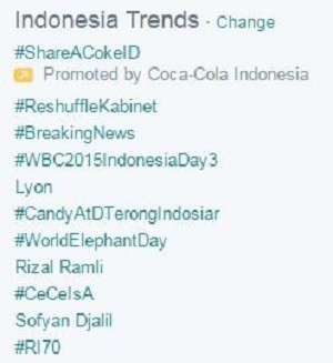 Dan menurut pantauan detikINET siang ini, Rabu (12/8/2015), tagar tersebut memuncaki daftar trending topic di Indonesia. Namun tampaknya tak cukup ramai untuk menembus daftar trending topic worldwide, karena tagar tersebut sama sekali tak muncul di daftar tersebut.