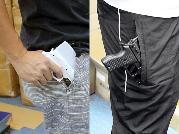 'Senjata' yang dimaksud tak lain berupa casing iPhone 6 yang bentuknya mirip dengan sebuah pistol. Belakangan memang banyak aksesoris dan casing smartphone yang bentuknya aneh-aneh beredar di pasaran.