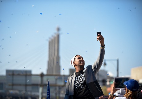 Groupfie. Singkatan dari group selfie yang berarti foto sekelompok orang yang mengambil foto selfie.