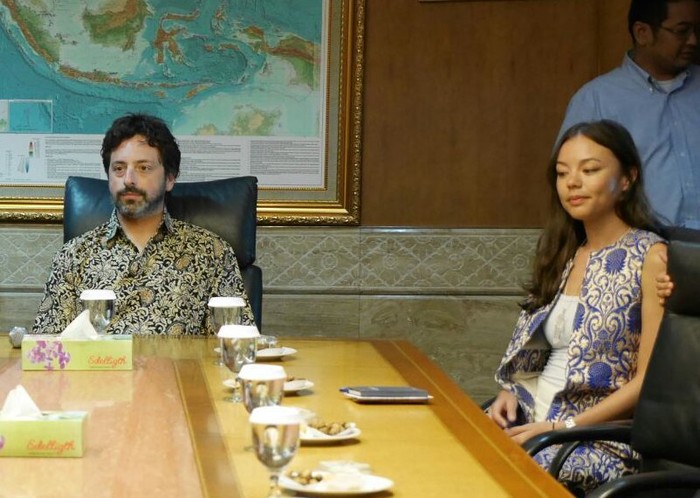 Seorang wanita cantik terlihat selalu menemani pendiri Google, Sergey Brin, dalam kunjungannya ke Indonesia. Identitasnya sudah terkuak.