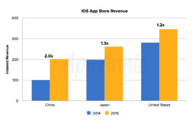 Apple harus berterima kasih pada pengguna di China, Amerika Serikat dan Jepang. Pasalnya, App Annie mencatat ketiga negara inilah yang paling banyak berkontribusi atas pemasukan App Store.