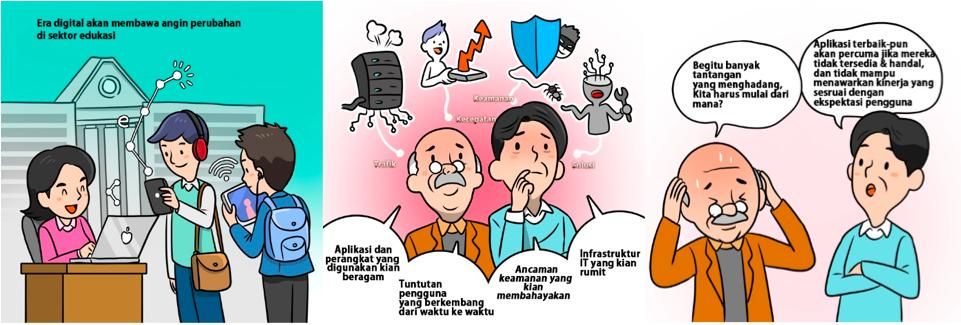 Banyak manfaat yang dapat dipetik dari pemanfaatan teknologi di dalam pendidikan, mulai dari membuat proses pembelajaran lebih efektif, hingga memperluas ketersediaan akses informasi serta sumber pengetahuan yang sesuai dengan kebutuhan pelajar. Dalam rangka merealisasikan hal tersebut, infrastruktur dan sistem IT sebagai mesin penggerak utama perlu dipersiapkan.