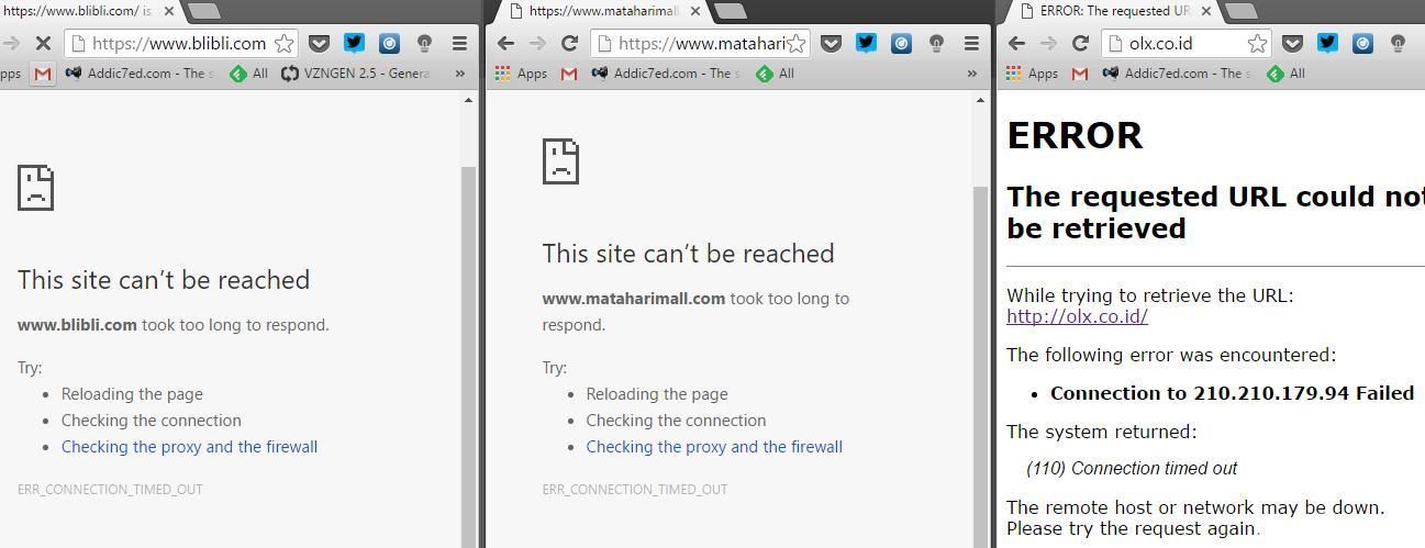 Ketika berita ini ditulis pada pukul 16.15 WIB, kedua situs tersebut -- OLX dan Blibli -- masih tak bisa diakses. Sementara MatahariMall tak butuh waktu lama untuk up kembali. Namun pada pukul 16.25 WIB, akses OLX dan Blibli sudah kembali normal.