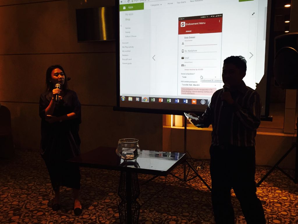 Saat pemaparan, Roger meminta sejumlah peserta buka bersama malam itu masuk ke Google Play dan mengetik "Endowment TF." Setelah muncul, aplikasi dengan review eksisting bintang lima itu tinggal kita unduh dalam hitungan detik. Dan, jika sudah menjadi aplikasi di layar ponsel cerdas Anda, proses pun demikian mudahnya.